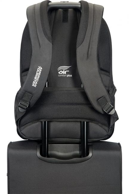 Kantomukavuutta lisää leveät, ergonomisesti suunnitellut olkaimet ja "Air Comfort Plus" -takapaneeli. Repussa on mukana myös sadesuoja ja smart sleeve, jonka avulla repun voi kiinnittää matkalaukun vetoaisaan.