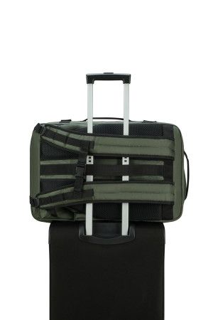 Kahvat, hihnat: Kaksi lyhyttä, jämäkkää kantokahvaa ja pehmustetut, säädettävät reppuolkaimet joissa rintaremmi. Smart sleeve ja kiristysremmit.