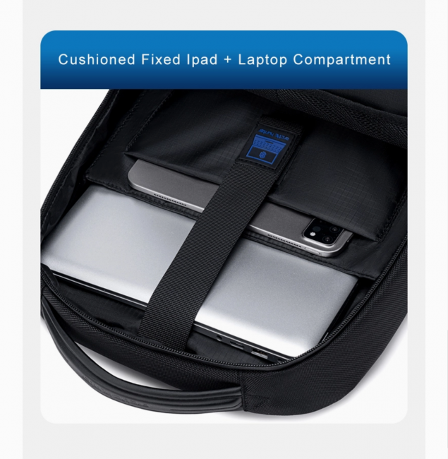 Repussa on ergonomiset, pehmeät olkaimet ja selkäosa. Selkäosassa on myös smart sleeve jolla repun saa kiinnitettyä matkalaukun vetoaisaan. Selkäosassa olevaa pehmustetta ja smart sleeveä on hyödynnetty lisäturvaa luoden niin että myös niiden suojiin on laitettu tasku.