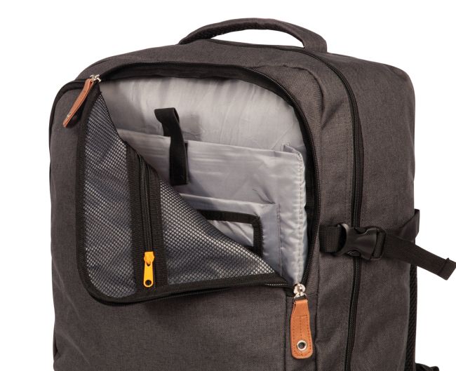Isoon osioon saat pakattua vaatteet siististi, sillä repussa on kätevä henkselikiinnitys. Tilavaan etutaskuun mahtuu esimerkiksi isompikin tietokone, tabletti, matka-asiakirjoja ja muuta pientä tavaraa. Useat taskut helpottavat tavaroiden järjestämisessä.