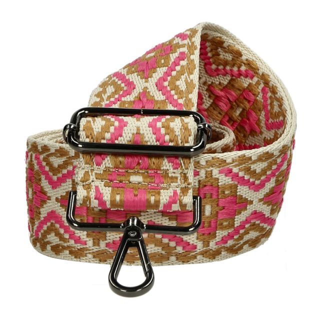 Enrico Benettin tekstiilinen olkahihna antaa laukullesi kauniin ilmeen. Hihnassa esiintyvät värit ovat pinkki, vaaleanruskea ja vaaleanbeige. Metalliset soljet ovat tummansävyisiä.