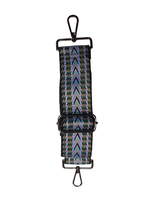 Enrico Benettin tekstiilinen olkahihna antaa laukullesi kauniin ilmeen. Hihnassa esiintyvät värit ovat lila, musta, khaki ja vaaleansininen. Metalliset soljet ovat tummansävyisiä.