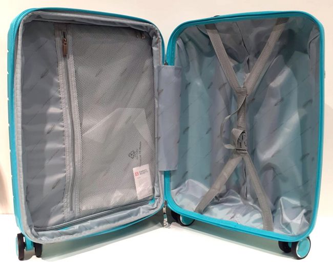 Matkalaukun sisällä on vetoketjulla suljettava tilanjakaja/väliseinä, jossa on tilava vetoketjutasku sekä henkselikiinnitys toisella puolella laukkua. Matkalaukussa on lisäksi vetoketjulla avattava laajennusosa.