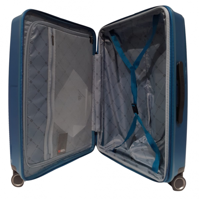 Matkalaukun sisällä on vetoketjulla suljettava tilanjakaja/väliseinä, jossa on tilava vetoketjutasku sekä henkselikiinnitys toisella puolella laukkua. Matkalaukussa on lisäksi vetoketjulla avattava laajennusosa, jota käyttämällä laukun tilavuus kasvaa.