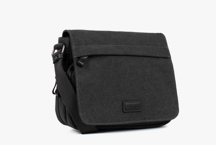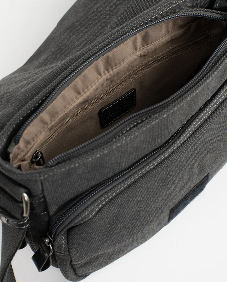 Fagolan canvaskankainen, musta olkalaukku, jota koristaa mustat nahkaiset yksityiskohdat. Laukku sisältää monipuolisesti taskuja, joten tavarat saa lajiteltua kätevästi. Laukun olkahihna on säädettävä sekä laukkuun saa lisää tilaa avaamalla pohjassa olevan vetoketjullisen laajennusosan.
