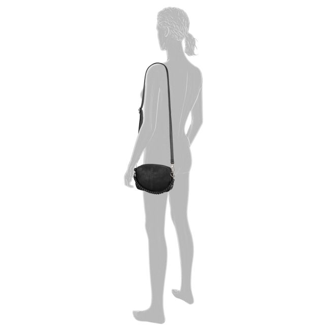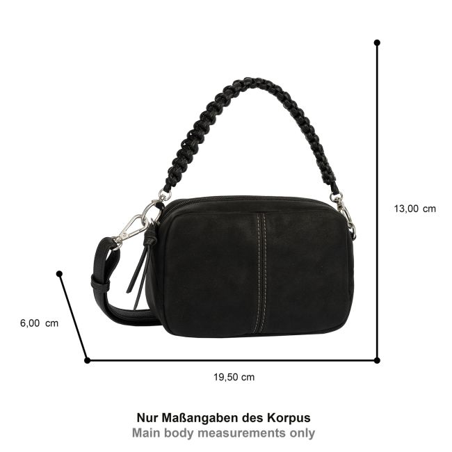 Gaborin Belene on musta kameralaukkumallinen olkalaukku, jonka materiaali tuntuu nupukkimaisen pehmeältä. Pieneen olkalaukkuun mahtuu tärkeimmät tavarat kuten puhelin, pieni lompakko, muutama meikkituote ja avaimet.