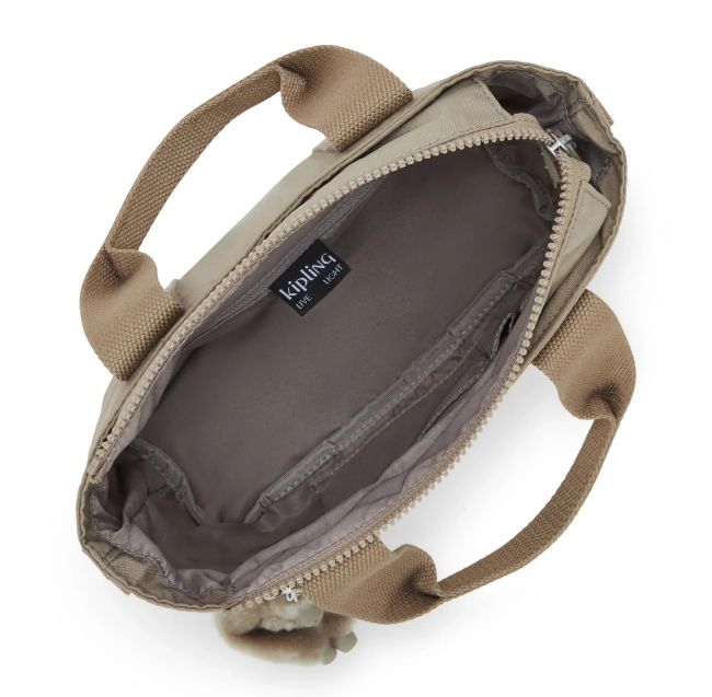 Kiplingin Minta on kevyt ja vettähylkivä olkalaukku perustarpeille. Laukussa on lyhyet kantokahvat ja irrotettava pitkä olkahihna, jonka voi portaattomasti säätää haluamaansa mittaan. Laukun mukana menossa roikkuu Kiplingin ikoninen, karvainen apinamaskotti.