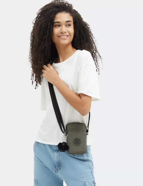 Kiplingin Tally on kankainen, kevyt kännykkälaukku, johon puhelimen lisäksi mahtuu pienet perustarpeet kuten korttikotelo, avain ja huulipuna.