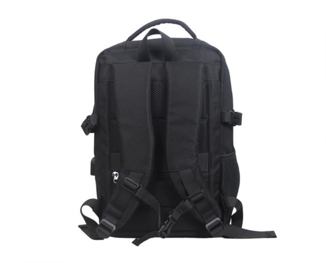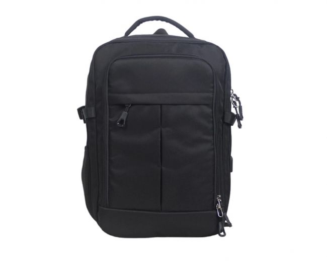 Taskut: Yksi tilava säilytysosio, jonne voi pakata esim. vaatteita. Repun edessä kaksi vetoketjullista taskua, joista isomman sisällä neljä vetoketjullista taskua ja avotasku sekä kaksi kynäpaikkaa. Repun sivussa avotasku esimerkiksi juomapullolle ja toisessa sivussa USB-portti. Repun selkäosassa on vetoketjullinen tasku.