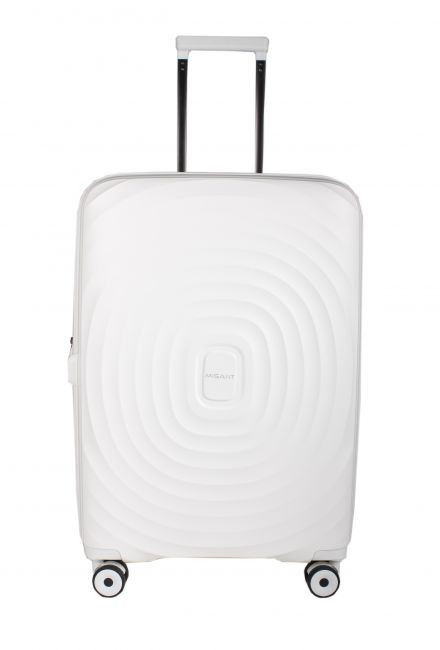 Migantin laadukas, polypropyleenista valmistettu valkoinen matkalaukku, joka on kevyt, neljän tuplapyörän ansiosta käytännöllinen ja helposti vierellä rullaava matkakumppani. Laukku on tyyliltään moderni ja persoonallisesti muotoiltu. Laukussa on TSA-lukko, hyvät sisätilaratkaisut ja laajennusosa, jota käyttämällä laukun tilavuus kasvaa 96 litrasta 106 litraan.