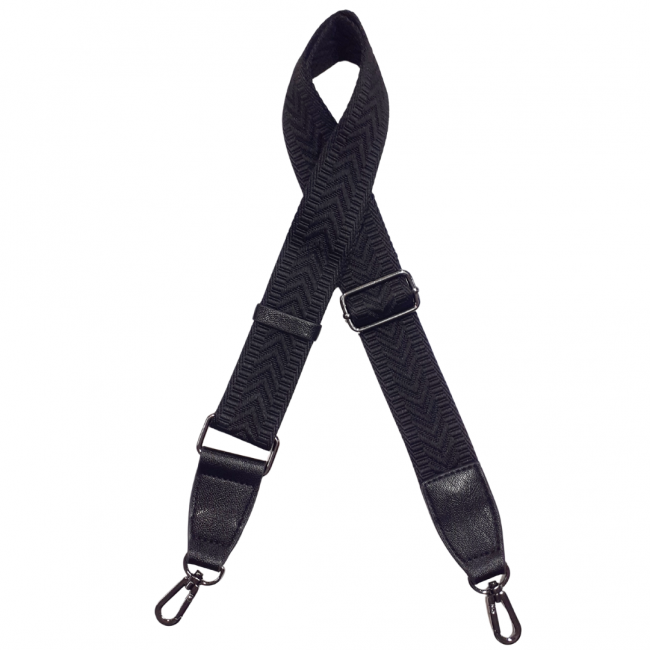 Migantin musta, tekstiilinen olkahihna antaa laukullesi kauniin ilmeen. Hihnassa on kaunis punosmainen kuvio. Metalliset soljet ovat tummansävyisiä.