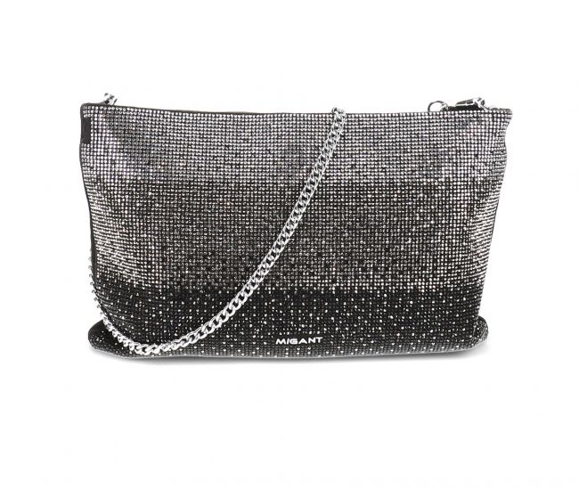 Migantin kaunis laukku ilta-ja juhlamenoihin. Laukku on sirolinjainen, pussukkamainen ja sinne mahtuu perustarpeet.