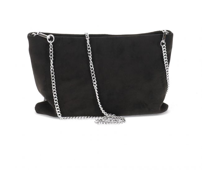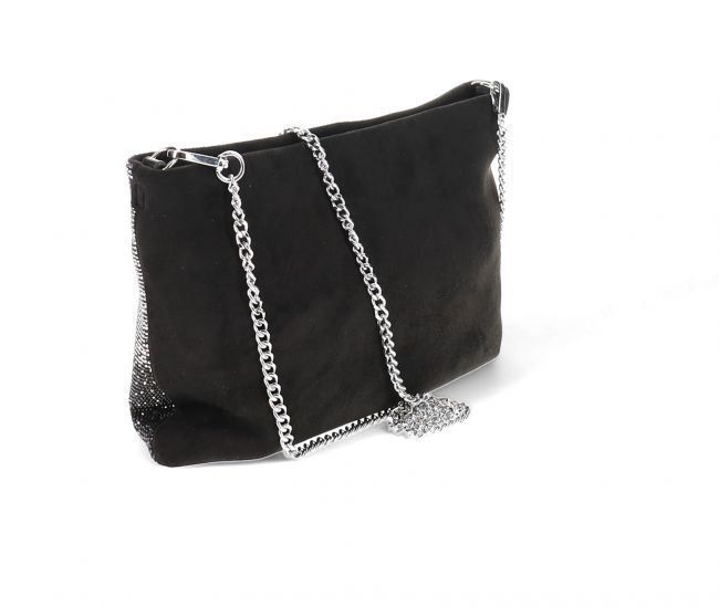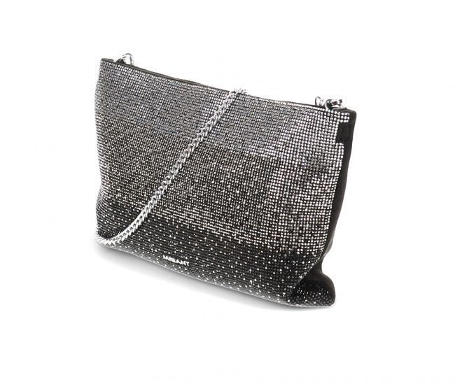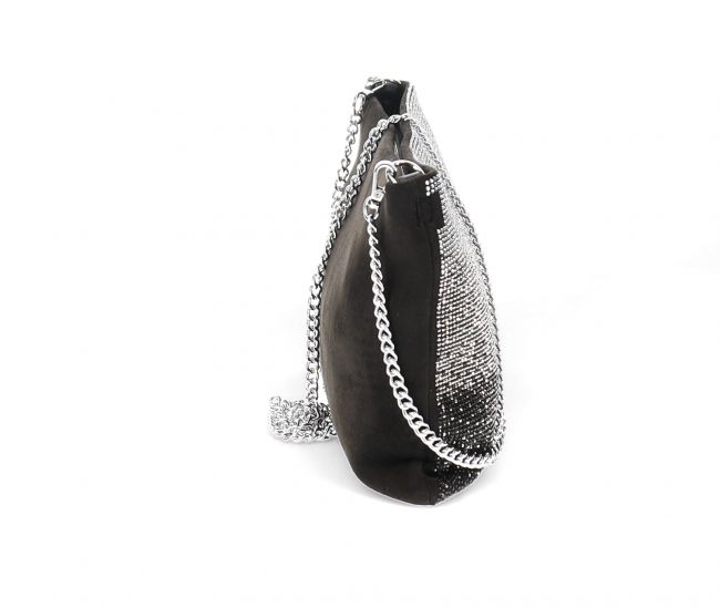 Laukku on väriltään musta ja sen etuosassa kimaltelee kauniisti mustia, tummanharmaita ja hopeanvärisiä strassikiviä. Hopeanvärinen metalliketju on irrotettavissa.