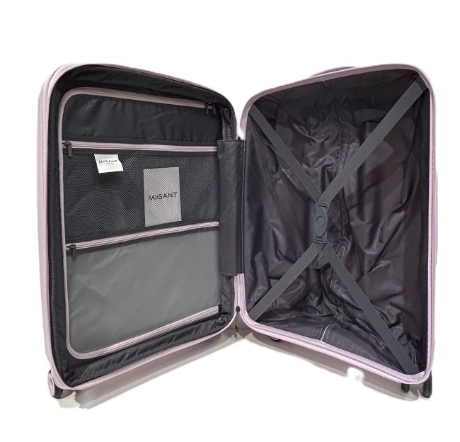 Migantin polypropyleenista valmistettu keskisuuri matkalaukku on kevyt, neljän tuplapyörän ansiosta käytännöllinen ja helposti vierellä rullaava matkakumppani.