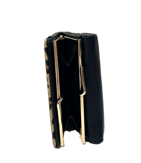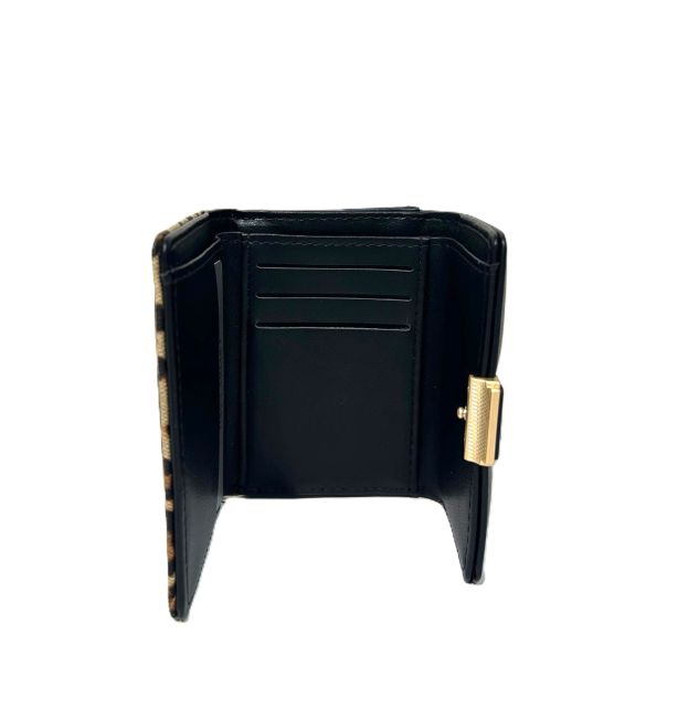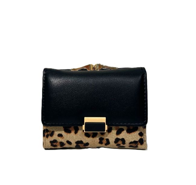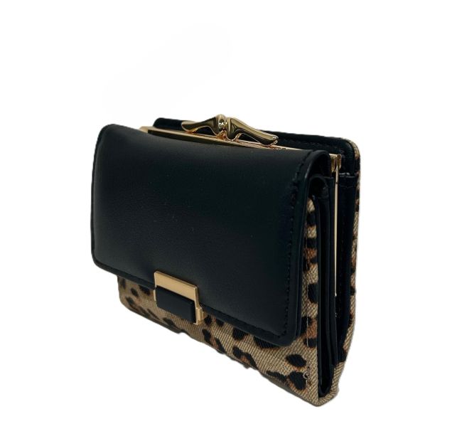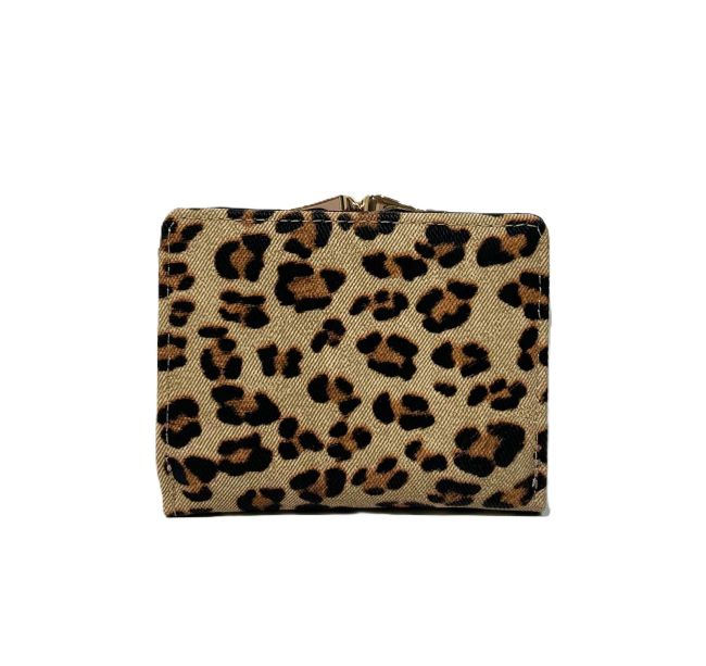 Nabon kaunis leopardikuosinen lompakko, jossa kullansävyinen kukkarokehys. Lompakkoon mahtuu vähän käteistä ja tärkeimmät maksukortit. Lompakko on sopivan kokoinen käteen, taskuun ja useimpiin laukkumalleihin.