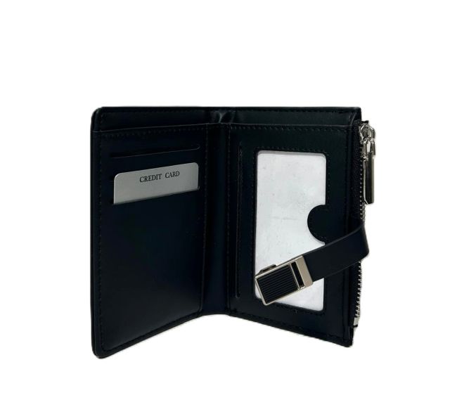 Taskut: Nepparilla suljettavan lompakon sisällä on neljä korttipaikkaa, joista yksi on ikkunallinen. Kaksi piiloavotaskua ja yksi osio seteleille. Lompakon ulkopuolella on vetoketjutasku kolikoille.
