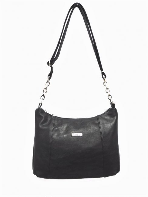 Nabon ryhdikäs olkalaukku jota koristaa hopeanvärinen metalliketju olkahihnan alareunassa. Laukkuun mahtuu perustarpeet. Laukku on valmistettu Nokian Nahkatuotteen tehtaalla Virossa.