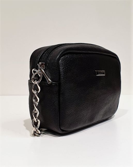 Nokian Nahkatuotteen Suomessa valmistama klassisen tyylikäs musta olkalaukku, joka soveltuu hyvin niin arkeen kuin juhlaankin. Ajattoman mallinsa ansiosta laukku säilyttää tyylikyytensä kaudesta toiseen. Laukun pitkä olkahihna on portaattomasti säädettävissä ja sen alareunoissa on hopeanväristä ketjua.