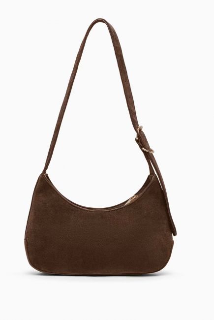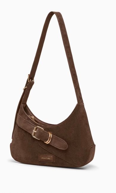 PUCCINI Fashion Collectionin ajattoman tyylikäs ja kompakti olkalaukku rentoon arkilookiin. Laukku on valmistettu ekologisesta mokkajäljitelmästä, ja sen klassinen muotoilu saa ilmettä etuosan koristeellisesta hihnadetailista.