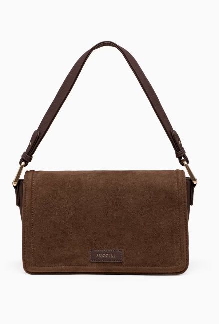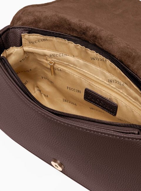 PUCCINI Fashion Collectionin olkalaukku on monikäyttöinen, käytännöllinen ja tyylikäs. Kompaktin kokoinen laukku yhdistää kaksi korkealaatuista materiaalia: keinomokan ja keinonahan.
