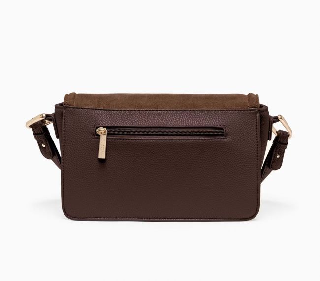 Laukun läppä on lämpimän ruskea väriltään, muu osa laukusta punaruskeaa. Laukun metallinväriset yksityiskohdat ovat kullanvärisiä.