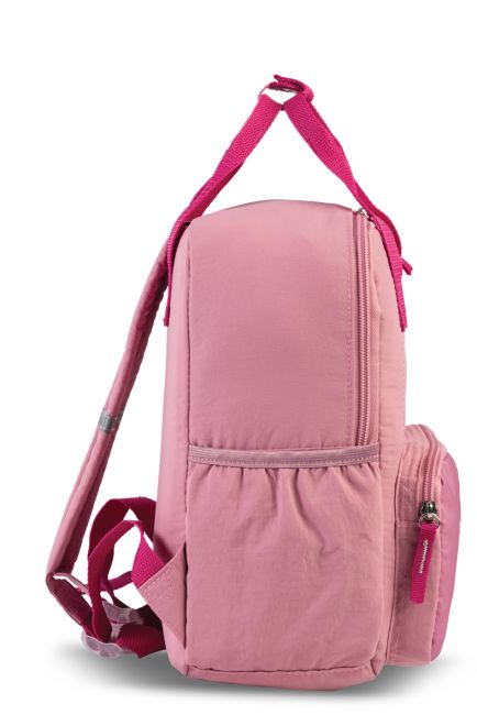 Ryhmä Haun suloinen Kaja koristaa tämän roosan, perheen pienimmille suunnatun kerhorepun pintaa. Reppuun mahtuu lapsen perustarpeet niin päiväkotiin kuin vapaa-ajan menoihin. Repun selkäosa ja olkahihnat ovat pehmustettu ja olkahihnoissa on pienet heijastimet turvallisuutta lisäämään. Kätevistä kantokahvoista reppua on helppo myös aikuisen kuljettaa.