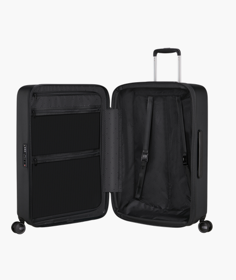 Matkalaukku on valmistettu polykarbonaatista, siinä on hyvin rullaavat tuplapyörät ja laajennusosa, jolla matkalaukun tilavuus kasvaa 76 litrasta 83 litraan. Matkalaukussa on naarmuuntumista hylkivä muotoilu ja kaunis mattapinta.