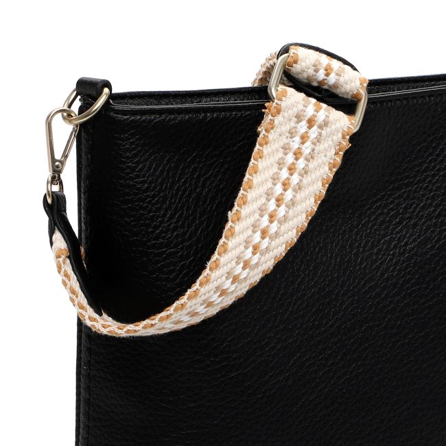 Laukussa on irrotettavissa oleva, kudotun tuntuinen, leveä olkahihna jonka pituus on säädettävissä. Laukku on väriltään musta, metalliset yksityiskohdat ovat vaaleasti kullansävyisiä ja hihnassa esiintyvät värit ovat kameli, taupe, valkoinen ja luonnonvalkoinen.
