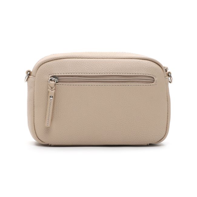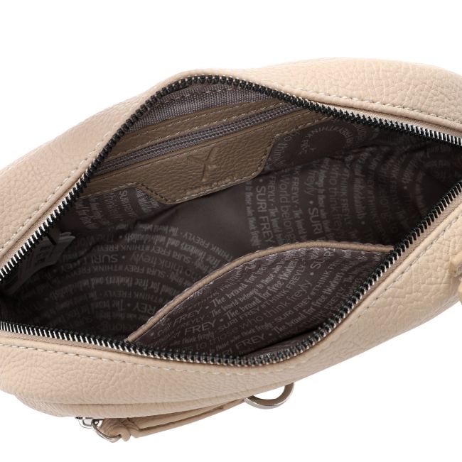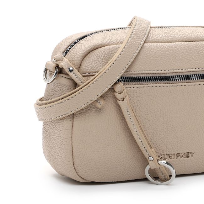 Suri Freyn Debby on beigensävyinen, rennon tyylikäs olkalaukku jonne mahtuu perustarpeet kuten kännykkä, lompakko, aurinkolasikotelo, jokunen meikkituote ja avaimet. Laukussa on leveä pohja mikä lisää tilantuntua ja helpottaa käyttöä, kun laukun sisältö on selkeästi nähtävissä.