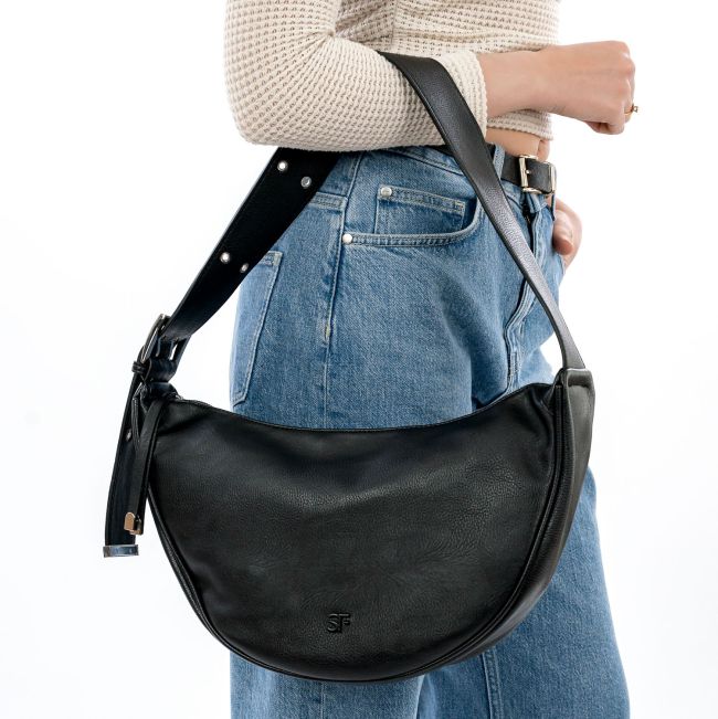 Suri Freyn Lorrey on musta arkeen sopiva olkalaukku, jossa leveä, näyttävän näköinen, vyömäinen olkahihna joka tuo laukun ilmeeseen persoonallista tyyliä.