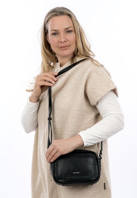 Suri Freyn musta olkalaukku, johon kaunis palmikoitu koristereunus antaa persoonallista ilmettä. Laukun materiaali on pehmeää, mutta laukku säilyttää muotonsa tyhjänäkin. Laukkuun mahtuu tärkeimmät tavarat kuten lompakko, puhelin, avaimet ja muutama meikkituote. Olkahihnan mitta on portaattomasti säädettävissä.