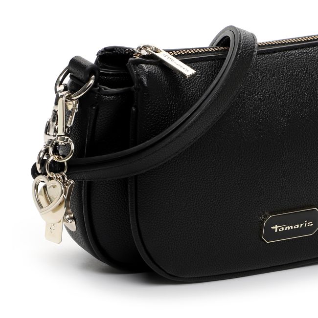 Tamariksen musta Katharina-olkalaukku sopii kokonsa ja tyylinsä puolesta niin arkeen kuin juhlavampiinkin tilaisuuksiin. Pieneen olkalaukkuun mahtuu hyvin esim. puhelin, pieni lompakko, pieni meikkipussi ja avaimet.