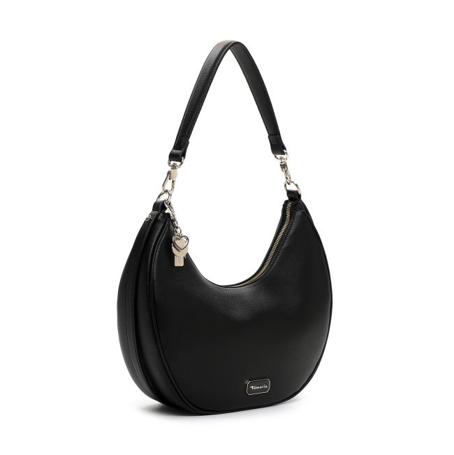 Tamariksen mustassa Katharina-olkalaukussa on kaksi olkahihnaa, joita vaihtelemalla laukun tyyliä ja kantotapaa on helppo muunnella. Laukku on malliltaan ryhdikäs ja se pysyy pystyssä tyhjänäkin. Laukkuun mahtuu arjessa tarvittavat perustarpeet kuten isompikin lompakko, puhelin, aurinkolasikotelo, pieni meikkipussi tms. Laukkua koristaa laukkukoru, jonka voi halutessaan irrottaa.