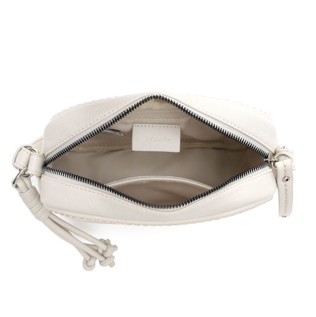 Tamariksen Keona on vaalea kamaralaukkumallinen olkalaukku, jota koristaa laukkukoru. Laukkuun mahtuu hyvin pienet perustarpeet kuten puhelin, pieni lompakko, muutama meikkituote ja avaimet. Olkahihnan mitta on portaattomasti säädettävissä. Laukun metalliset yksityiskohdat ovat hopeanvärisiä.