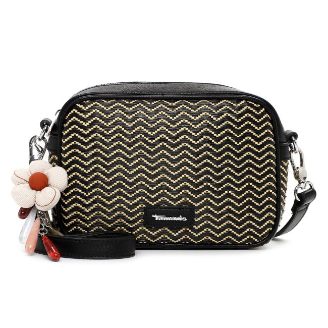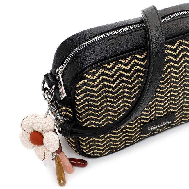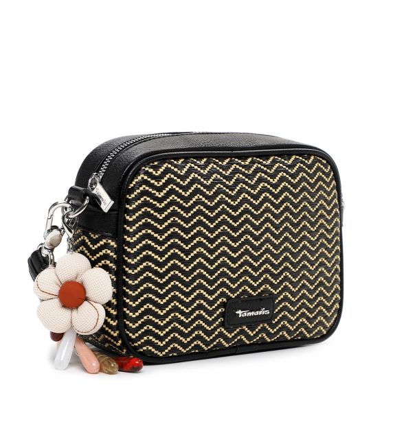 Tamariksen Konstantina on persoonallinen, olkimaisen tuntuman omaava kaunis olkalaukku. Laukku sopii hyvin käyttöön aamusta iltaan ja sinne mahtuu perustarpeet kuten kännykkä, pieni lompakko, litteä aurinkolasikotelo, jokunen meikkituote ja avaimet.