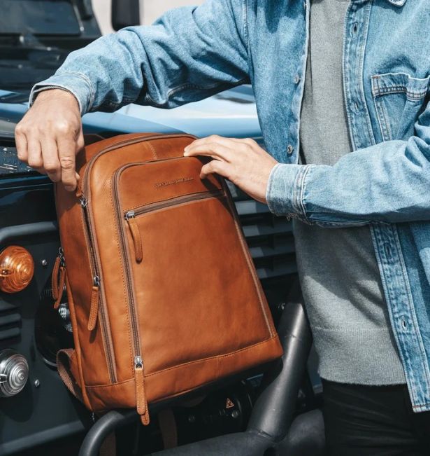 The Chesterfield Brand nahkainen Detroit on trendikäs ja monilokeroinen reppu, johon tavarat saa kätevästi lajiteltua omille paikoilleen. Repusta löytyy erillinen säilytystila (max 14") tietokoneelle sekä runsaasti kynä- ja korttipaikkoja. Tämä tyylikäs reppu soveltuu myös hyvin matkustamiseen, repun takaa löytyvän Smart Sleeve ominaisuuden ansiosta.