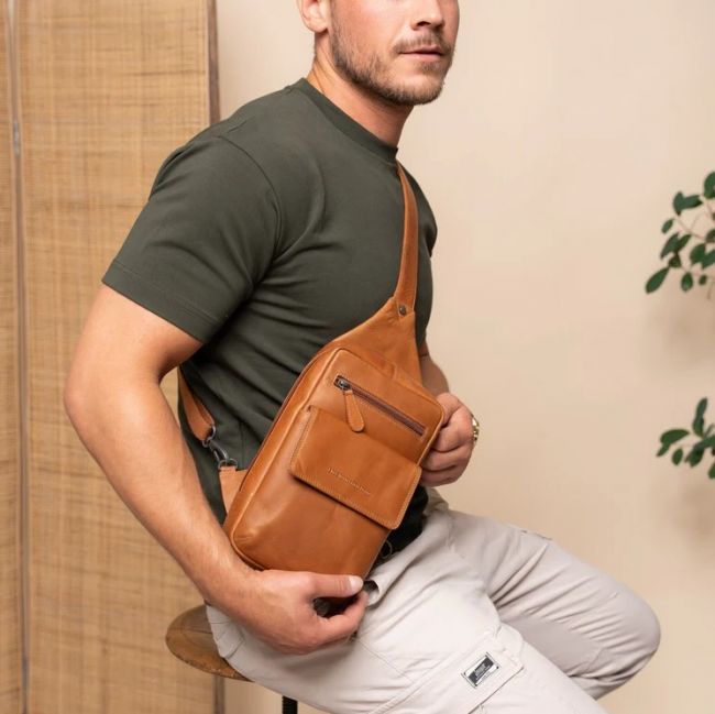 The Chesterfield Brandin konjakin sävyinen Turelle on kompakti ja monikäyttöinen nahkainen slingbag, joka on täydellinen valinta aktiiviseen arkeen, kaupunkireissuille tai festareille. Tyylikäs ja käytännöllinen laukku pitää tärkeimmät tavarasi järjestyksessä ja helposti saatavilla. Säädettävän olkahihnan ansiosta laukkua voi kantaa mukavasti joko rinnan päällä tai selän puolella tilanteen mukaan.