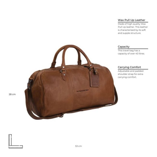 The Chesterfield Brandin konjakinruskea William on upea, aidosta nahasta valmistettu matkakassi. Matkakassissa on tukevat kantokahvat ja pitkä olkahihna, jossa kantamista helpottava levike. Tilavuudeltaan 43 litraiseen matkakassiin on helppo pakata, sillä siinä on leveä pohja.