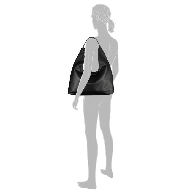 Tom Tailorin Elaria on suuri, pehmeälinjainen hobo-olkalaukku, jota voi rennosti kantaa olalla. Laukku on malliltaan pussukkamainen ja siihen mahtuu paljon tavaraa. Mustaa olkalaukkua koristaa laukkukoru, jonka voi halutessaan irrottaa. Laukun takana on vetoketjutasku, jossa voi kätevästi säilyttää vaikka avaimia.