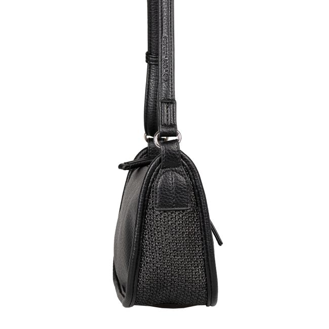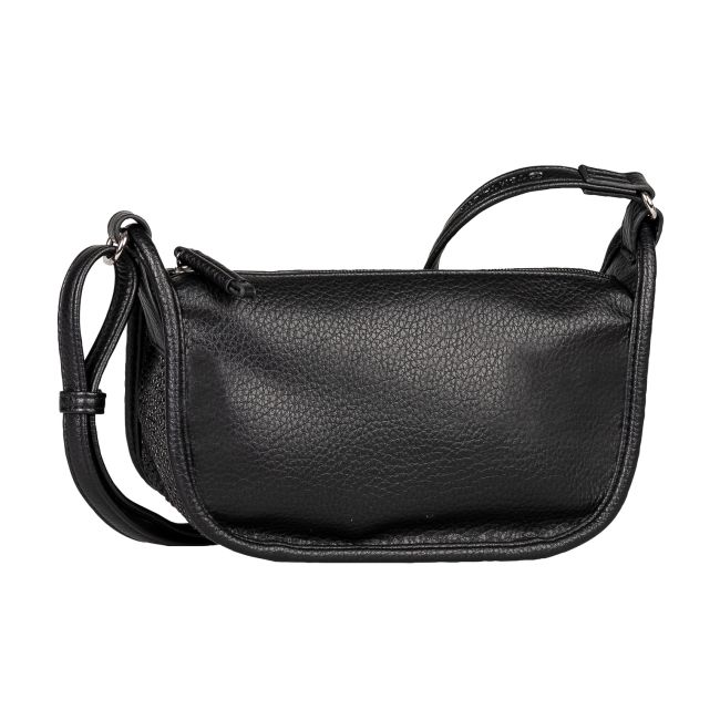 Tom Tailorin mustassa Evann-olkalaukussa on kivana yksityiskohtana laukun sivussa oleva korimainen punos. Laukkuun mahtuu tärkeimmät perustarpeet kuten lompakko, puhelin, aurinkolasikotelo ja avaimet. Laukussa on pitkä portaattomasti säädettävä olkahihna, joka mahdollistaa helpon kantotavan säädön.