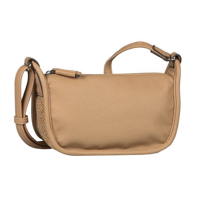 Tom Tailorin kamelinvärisessä Evann-olkalaukussa on kivana yksityiskohtana laukun sivussa oleva korimainen punos. Laukkuun mahtuu tärkeimmät perustarpeet kuten lompakko, puhelin, aurinkolasikotelo ja avaimet. Laukussa on pitkä portaattomasti säädettävä olkahihna, joka mahdollistaa helpon kantotavan säädön.
