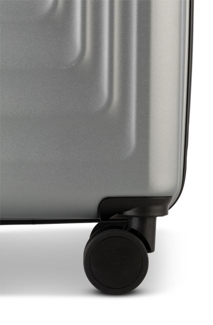 Lentolaukku on valmistettu ABS-muovista ja se on kevyt ja neljän tuplapyörän ansiosta helposti vierellä rullaava matkakumppani.